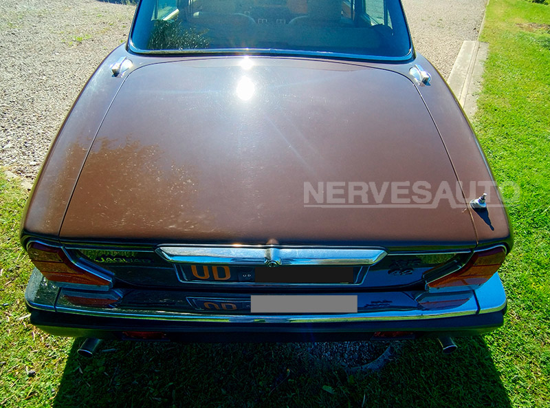 La Jaguar XJ6 del 1980 è una berlina inglese di grande classe, proposta in una colorazione marrone con targhe nere originali e cambio automatico.