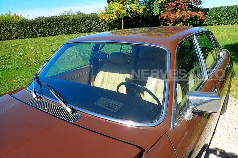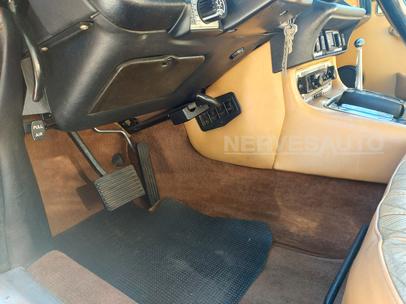 È un’auto conservata e sana, rimasta ferma per oltre 35 anni in garage asciutto, al riparo da umidità e intemperie.La selleria originale, cromature ancora in ottimo stato, che mantengono la brillantezza tipica delle Jaguar di quegli anni.