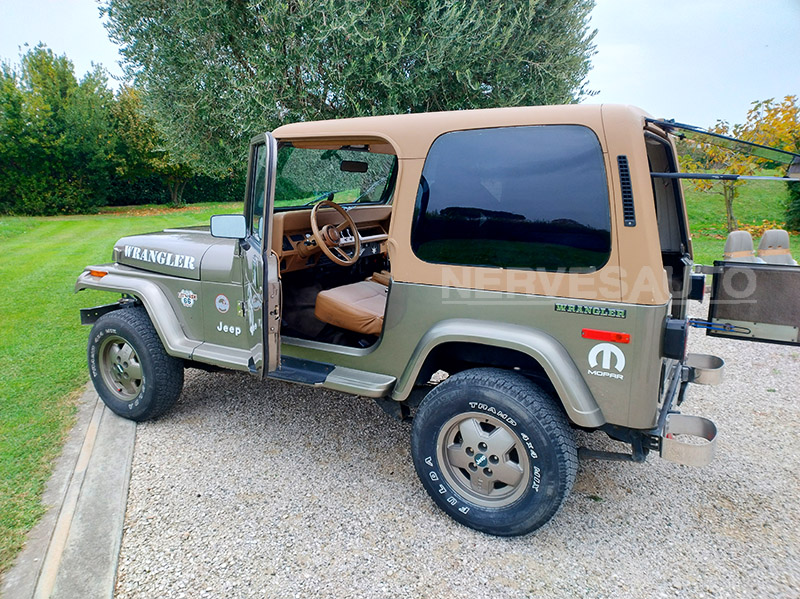 Jeep Wrangler 2.5 Benzina – 1988 – 117 CV – Completa, Iconica e Pronta all’Avventura Proponiamo una splendida Jeep Wrangler YJ del 1988, motore 2.5 benzina da 117 CV, in ottime condizioni generali e completamente accessoriata. Auto sana, affidabile e autentica, perfetta per chi cerca un vero fuoristrada d’epoca pronto a tutto. Caratteristiche principali: Motore 2.5 benzina – 117 CV Cambio manuale a 5 marce Trazione integrale part-time con ridotte Carrozzeria verde, interni in pelle color crema 275.000 km totali, ma motore revisionato nel 2024 (solo 4.500 km dopo la revisione) Revisione valida fino a luglio 2027 Due treni completi di cerchi e pneumatici (8 gomme + ruota di scorta, tutte dello stesso disegno delle foto) Tettuccio rigido (hard top) e cappottina soft top Due set completi di porte: uno per l’hard top e uno per il soft top Finestrini smontabili, interni originali, meccanica impeccabile Sempre seguita e mantenuta con cura dal precedente proprietario Questa Wrangler rappresenta una vera icona del fuoristrada: robusta, semplice da gestire, completamente originale e pronta per qualsiasi avventura. Anno di produzione: 1988 ️ Versione: Jeep Wrangler YJ 2.5 Benzina 4x4 Potenza: 117 CV Condizioni: eccellenti, pronta all’uso Per ulteriori informazioni contattateci tramite: Email: info@nervesauto.com WhatsApp: 335 82 62 808 (Olivotto Gastone) Chiediamo cortesemente di specificare il vostro numero di telefono nelle richieste via email, grazie.