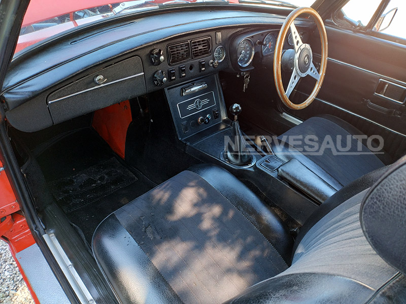 La carrozzeria è in ottimo stato generale, con lievissime imperfezioni estetiche esterne che ne confermano l’autenticità di conservato. Gli interni si presentano in buone condizioni, mantenendo la sportività e lo stile tipico della MG anni ’70.