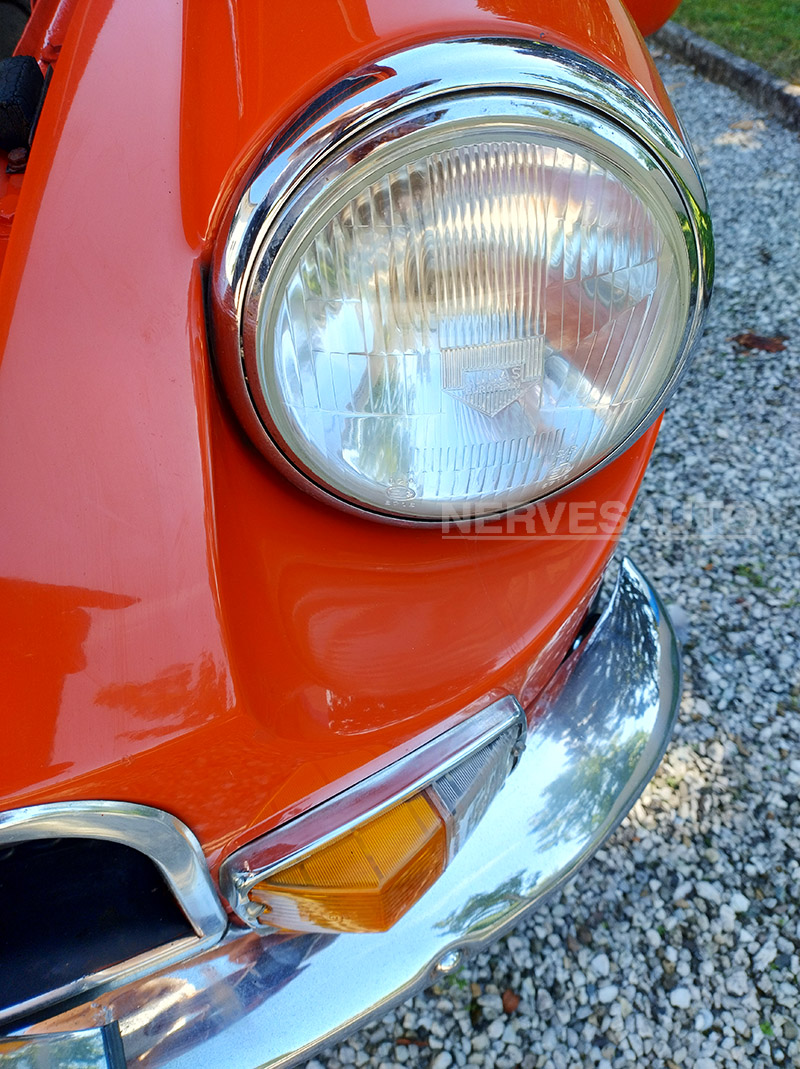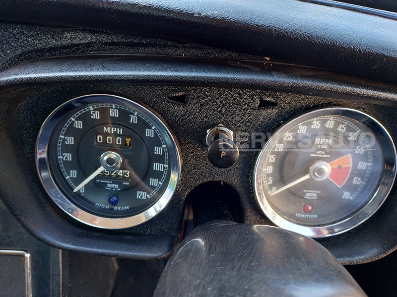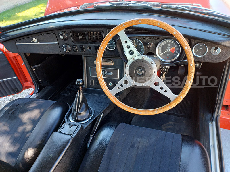 Year: 1972 – Engine: 4-cylinder inline – Fuel: Petrol – Gearbox: Manual with Overdrive – Drive: Rear-wheel – Color: Orange – Interior: Black – Wheels: Wire – Steering wheel: Motolita – Oil cooler and brake servo – Condition: Preserved with CRS – Notes: Minor aesthetic imperfections, overall excellent.
