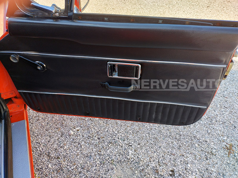 Anno: 1972 – Motore: 4 cilindri in linea – Alimentazione: Benzina – Cambio: Manuale con Overdrive – Trazione: Posteriore – Colore: Arancione – Interni: Neri – Cerchi: A raggi – Volante: Motolita – Radiatore dell’olio e servofreno – Stato: Conservata, con CRS – Condizioni generali: Ottime, con minime imperfezioni estetiche.