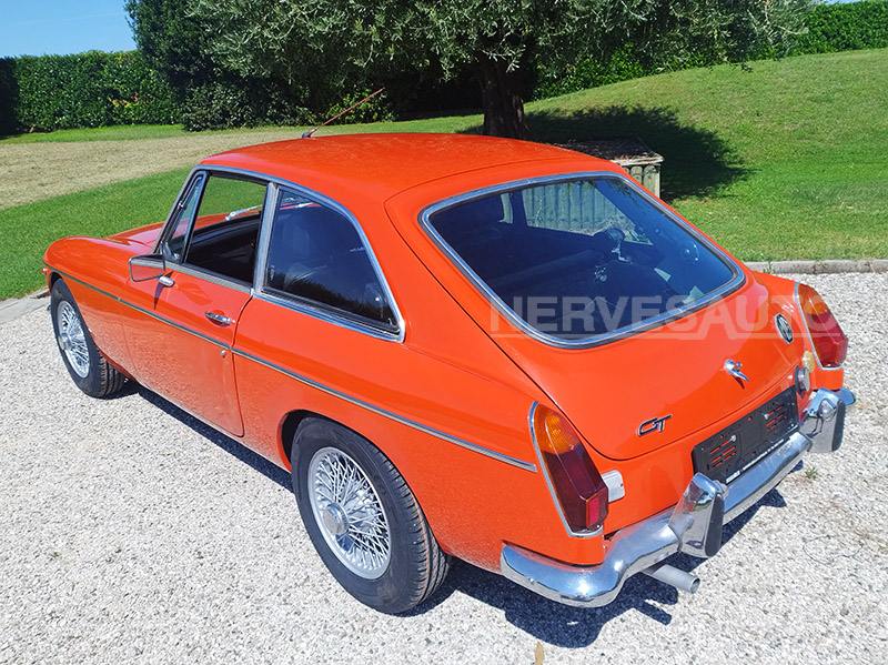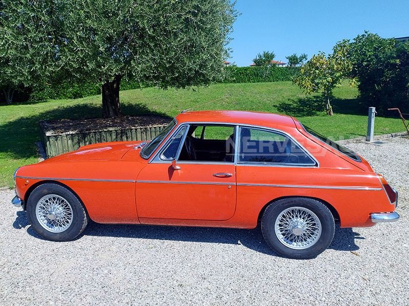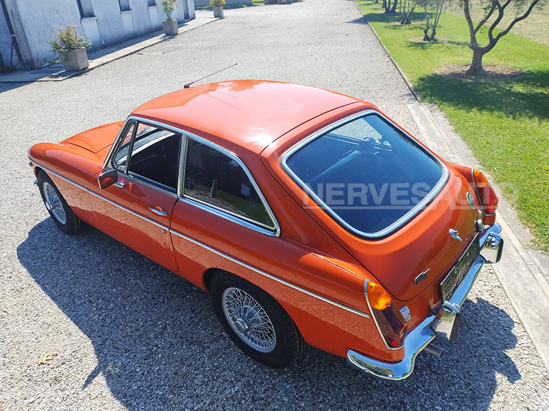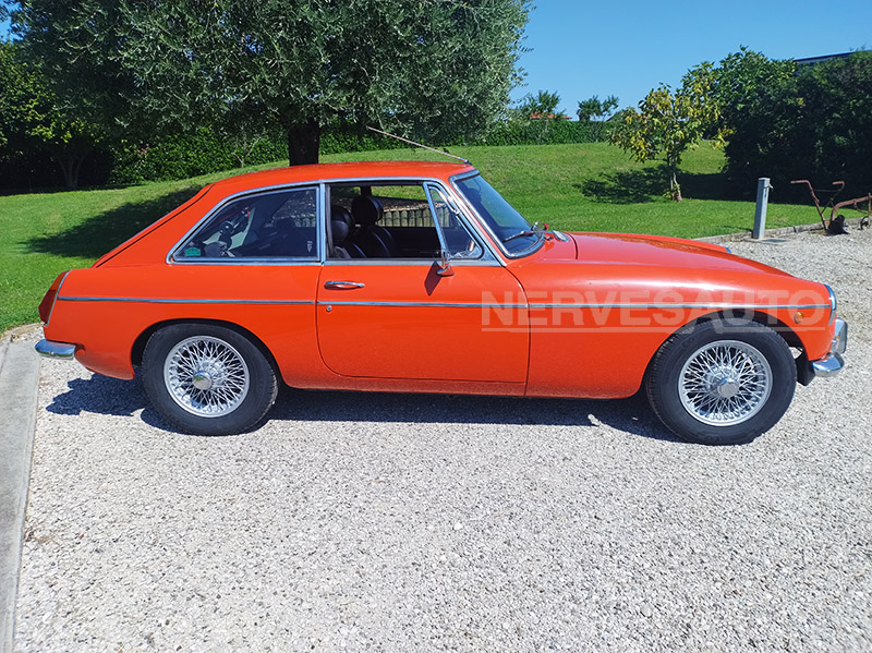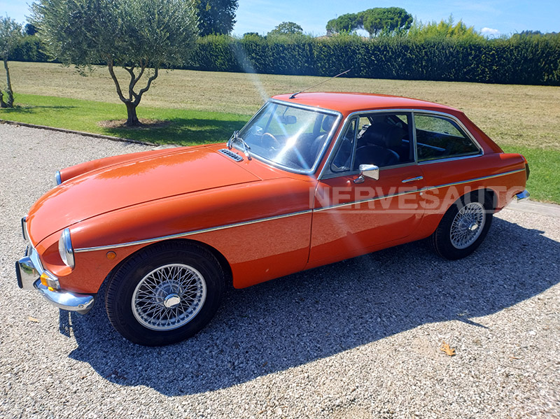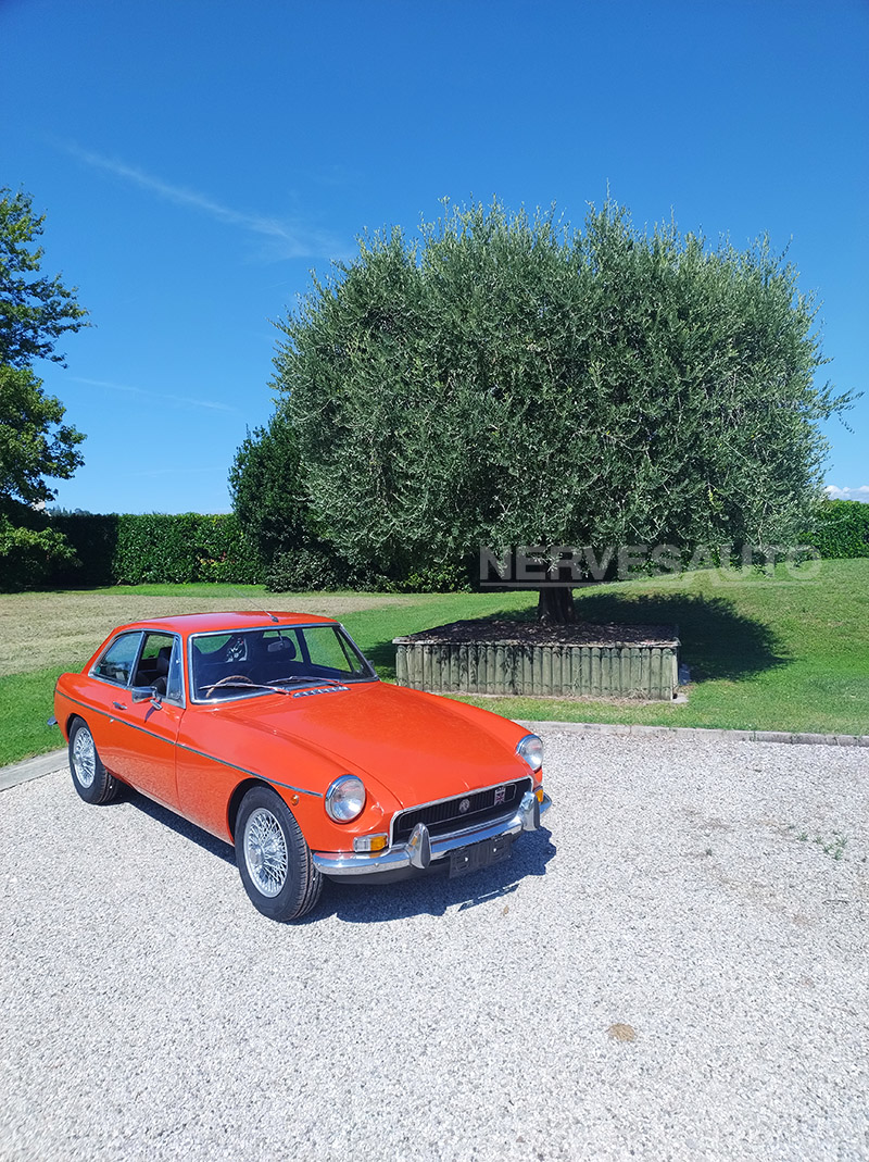 Bellissima MG B GT del 1972 in colorazione arancio, una tinta davvero particolare che, inoltre, risulta molto più brillante dal vivo rispetto alle foto. La vettura si presenta con interni neri, cerchi a raggi, volante sportivo Motolita, radiatore dell’olio e servofreno. È equipaggiata con overdrive, dettaglio molto apprezzato dagli appassionati per migliorare comfort e fruibilità nei lunghi viaggi.