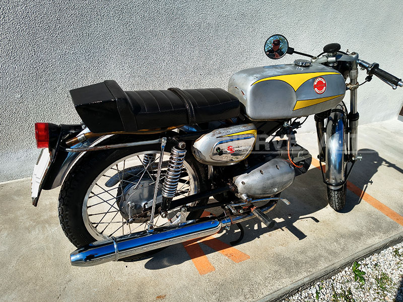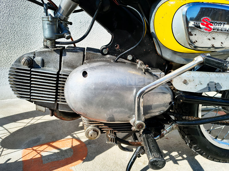 Motorizzata con monocilindrico 4 tempi di 250 cc, rappresenta perfettamente la produzione motociclistica italiana degli anni ’70.